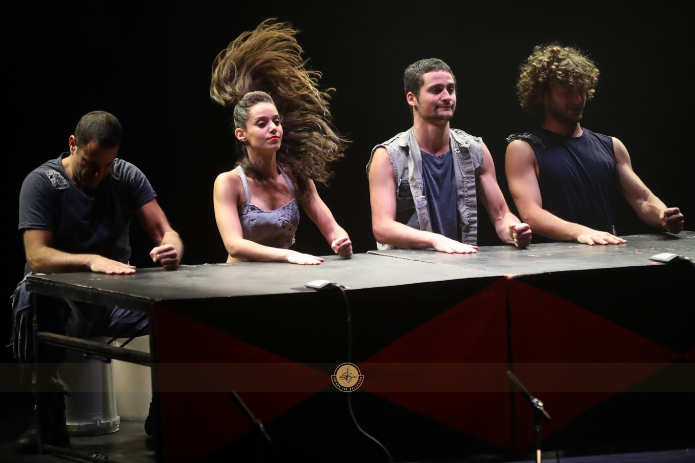 Así como lo dice su nombre, Currents (corriente en español), es un espectáculo donde hay una gran carga de energía sobre el escenario y entre los miembros de la compañía. Es así, como se aprecian estos dos sectores enfrentados, que dan cuenta de una disputa dialogada con iluminación y sonidos propios.